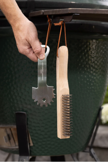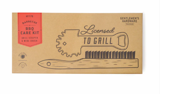 Up your grilling game with this BBQ Care Kit. Complete with grill scraper and wire brush, this set gives you the tools you need to maintain your outdoor BBQ. Keep things tidy with convenient hanging loops and even pop a bottle with the bottle opener on the end of the stainless steel grill scraper.
