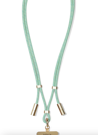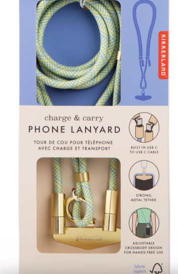 Adjustable hands-free phone holder doubles as a charging cord! Wear it around your neck or shoulder while on the go. Type C to Type C charging cord.
