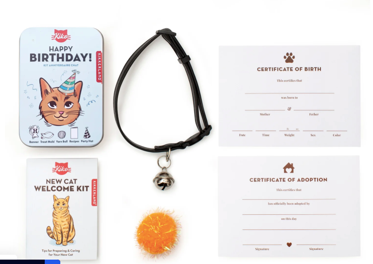 All you need for your new cat! Includes adoption and birth certificates, quick release bell collar, catnip ball, and care guide.