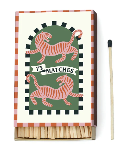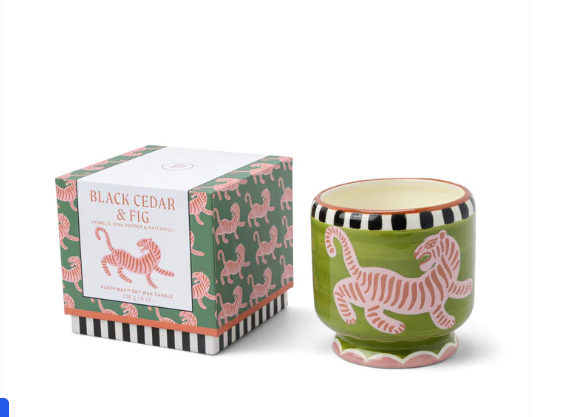 Tiger Ceramic Candle - Black Cedar and Fig and box of matches