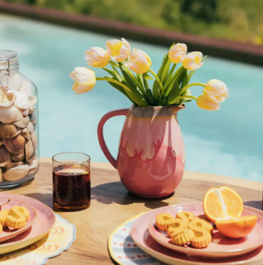 Carefully handcrafted, this ceramic pitcher features exclusive, vibrant colors that add charm and character to any table. Whether used for serving or as a decorative accent, its organic shape and joyful tones make it a standout piece for both everyday meals and special gatherings. This article has a capacity of 1,76L.