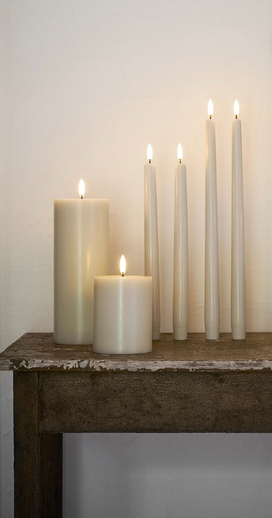 32cm, takes 2 AAA batteries, 200 hours battery life