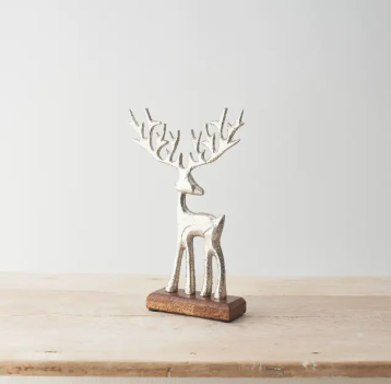 Silver Deer on Wooden Stand Medium
